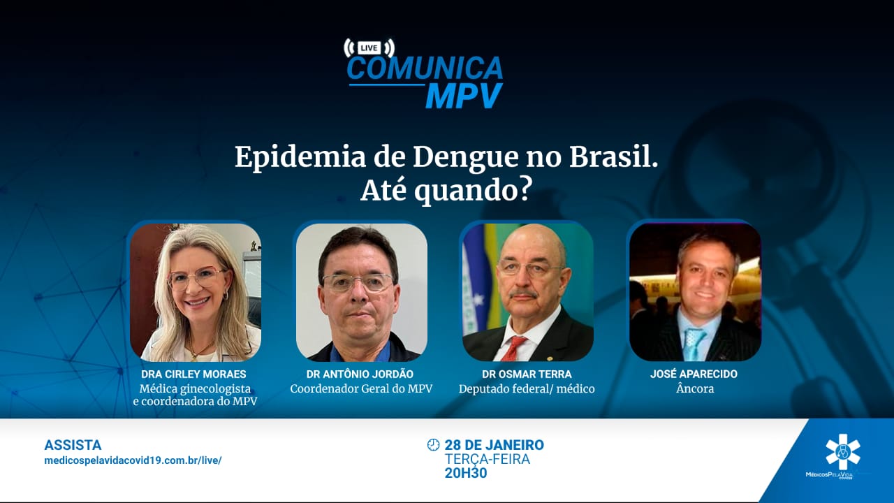 A 136ª Live Comunica Médicos pela Vida debate a epidemia de Dengue no Brasil: “Afinal, por que ocorre essa explosão de casos e de mortes? O que mudou? Porque o governo parece inerte? De quais maneiras a epidemia de dengue pode ser enfrentada? E quem cuidará dos brasileiros?” com o Deputado Federal Osmar Terra que é médico, neurocientista e ex-gestor de saúde.