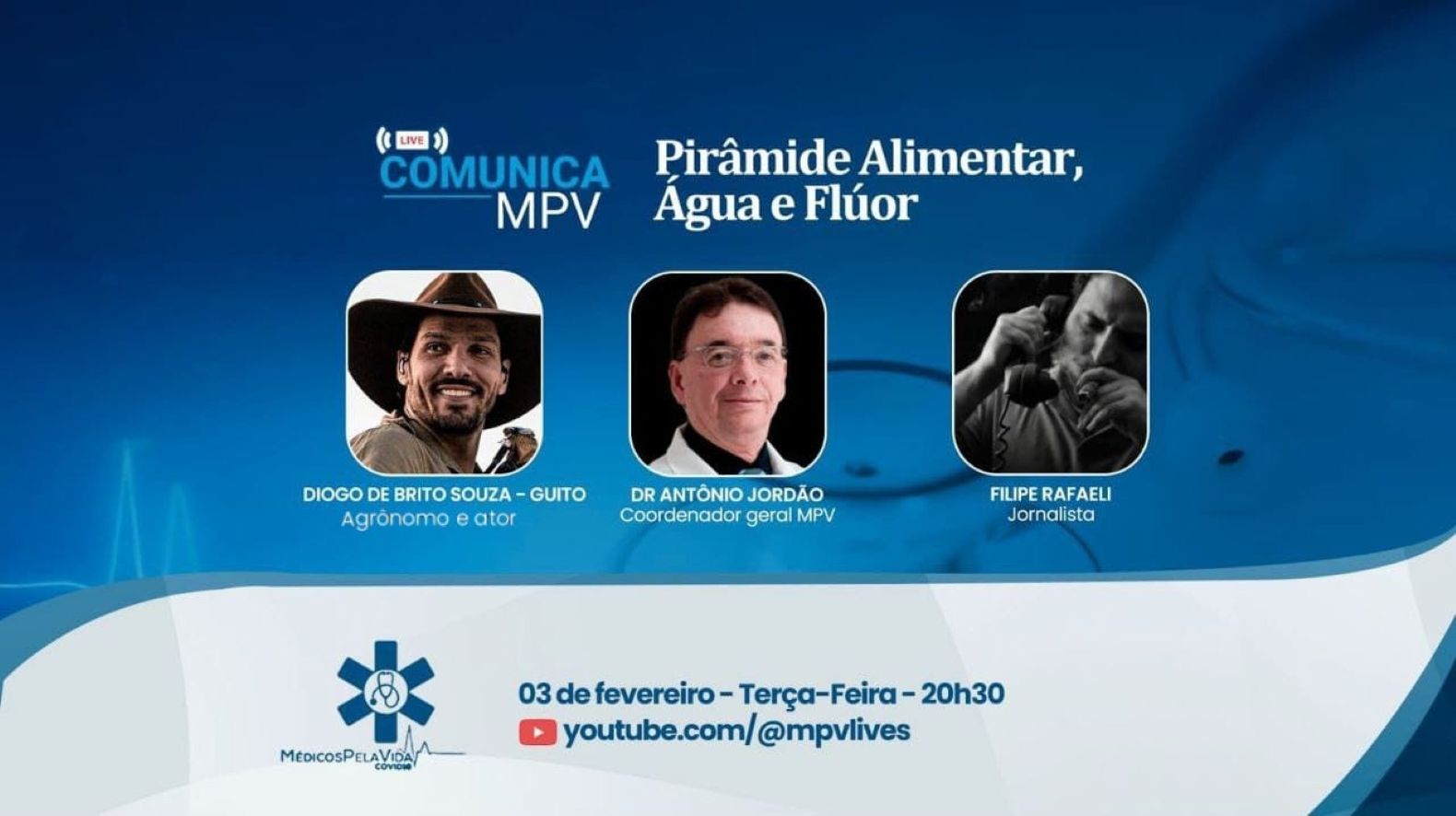 Para conversar sobre este tema importante e que afeta a vida de milhões de pessoas nos EUA e em todo o mundo, o MPV convidou o agrônomo Guito, profundo conhecedor do assunto, em uma bancada formada pelo jornalista responsável pelo site do Médicos pela Vida, Filipe Rafaeli e o Coordenador Geral do MPV, o Médico Oftalmologista com formação em Saúde Pública, Dr. Antônio Jordão Neto.
